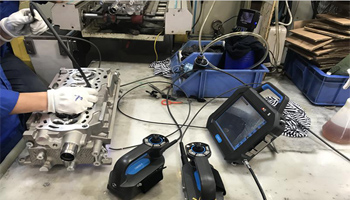 精加工廠:用亞泰光電SIE工業內窺鏡測缸蓋,全檢式,客戶現使用的是國外某知名內窺鏡品牌,6mm短款鏡頭的光纖內窺鏡,色澤偏黃,有嘗試過外接顯示屏,但是嚴重影響清晰度。客戶技術部李工介紹演示過的內窺鏡廠家不下四家,都是用的4mm的工業內窺鏡