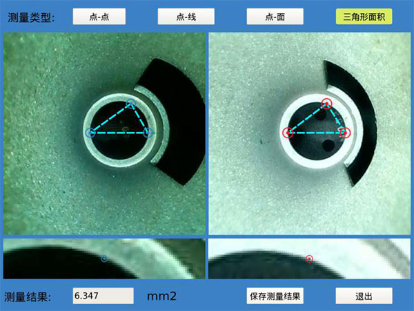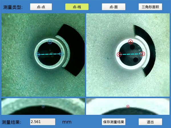 三維測量系統,可通過點到點,點到線、點到面、面積測量等方式精準測量缺陷的尺寸。