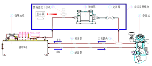 技術方案:通過為柴油機潤滑系統增加在線油液監測系統,實時監控潤滑系統的多項指標參數,結合潤滑系統的正常范圍標準,監測潤滑各項數據的趨勢波動范圍,判斷系統潤滑質量、潤滑設備的磨損情況,對發動機進行實時診斷預防漸發性故障。